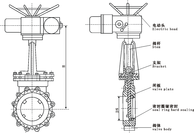 Position: Index>Products>Knife Gate Valve Series>Electric Knife Gate Valve > Electric dark plate knife gate valve DMZ973H